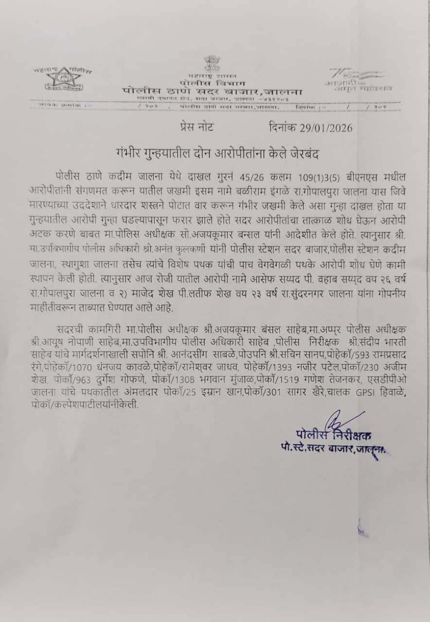 गंभीर गुन्ह्यात २ आरोपींना केले जेरबंद.
